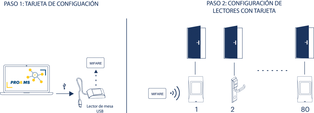 Las soluciones OFFLine de XPR brindan las ventajas de un sistema de control de acceso que puede administrar una gran cantidad de puertas y usuarios, al tiempo que minimiza el cableado y el tiempo de instalación. Estas soluciones son más económicas que un sistema ONLine porque no requieren un controlador ni infraestructura ethernet. Pueden administrar un número ilimitado de sitios y usuarios gracias a su software de fácil uso: PROA MS.