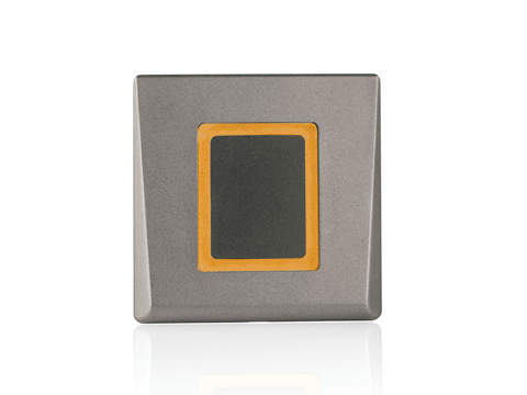 DINMTPX-MF-SA has a multicolour rectangular status LED. The RFID reader changes colour if the user’s key fob is idle (orange), accepted (green) or denied (red).