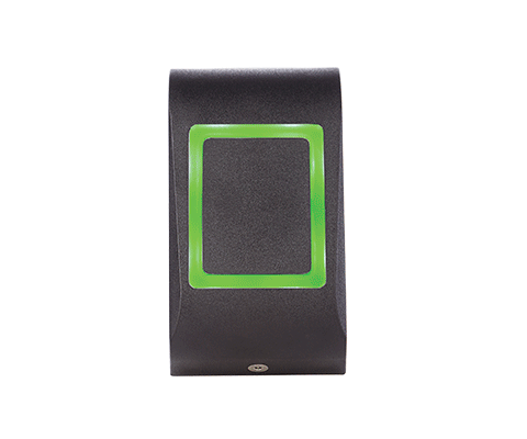 It can read 13.56 MHz credentials and communicate with standard Wiegand protocol.